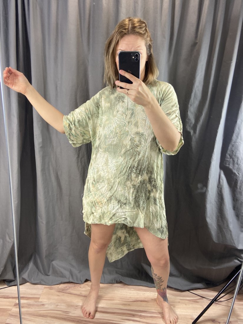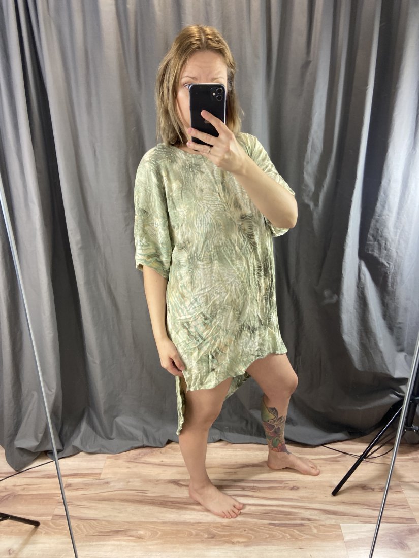 Angel Circle. Tunika z marszczonej wiskozy. Z asymetrycznym dołem. O prostym kroju.
