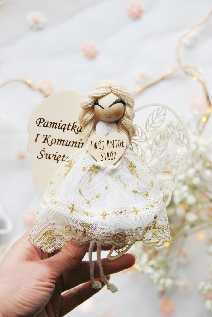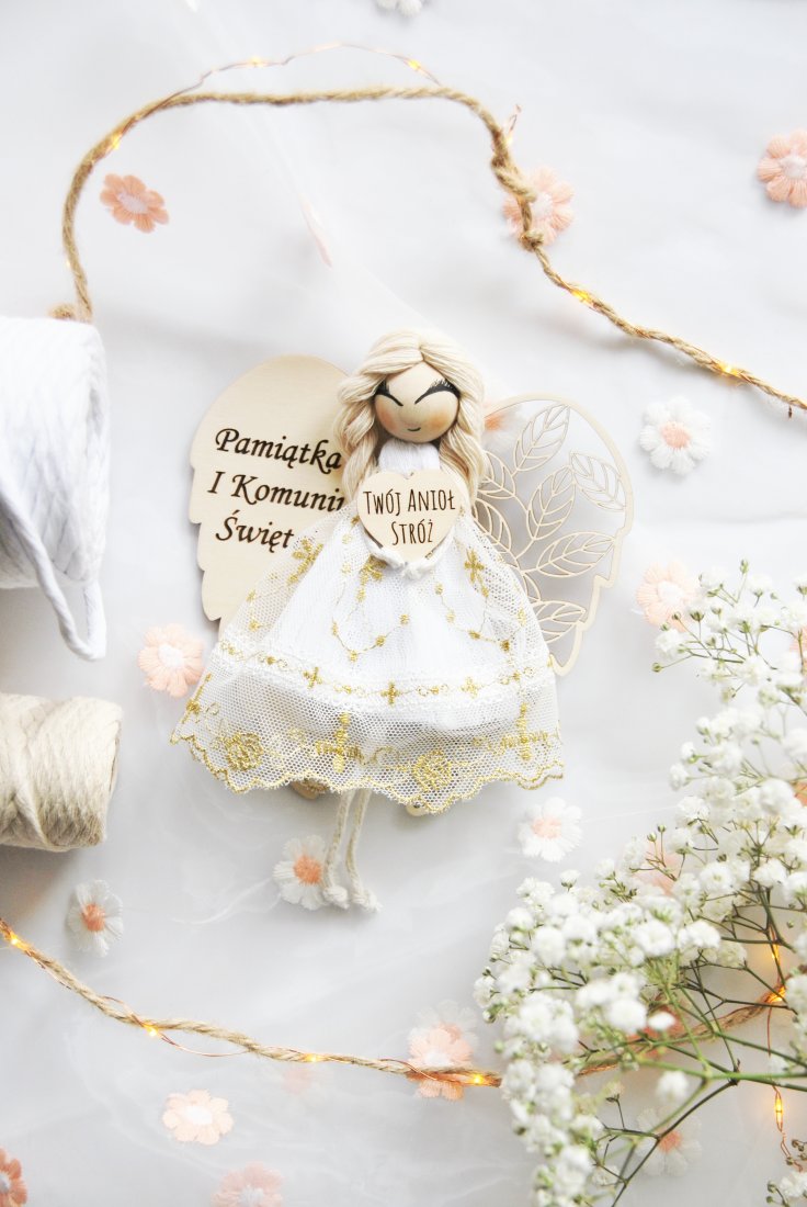 Delikatny, pełen symboliki i ciepła – ten wyjątkowy Anioł komunijny to coś więcej niż dekoracja. To pamiątka, która zatrzymuje w czasie jeden z najważniejszych momentów w życiu dziecka. Idealny prezent na komunię dla dziewczynki.