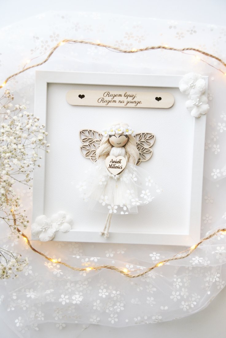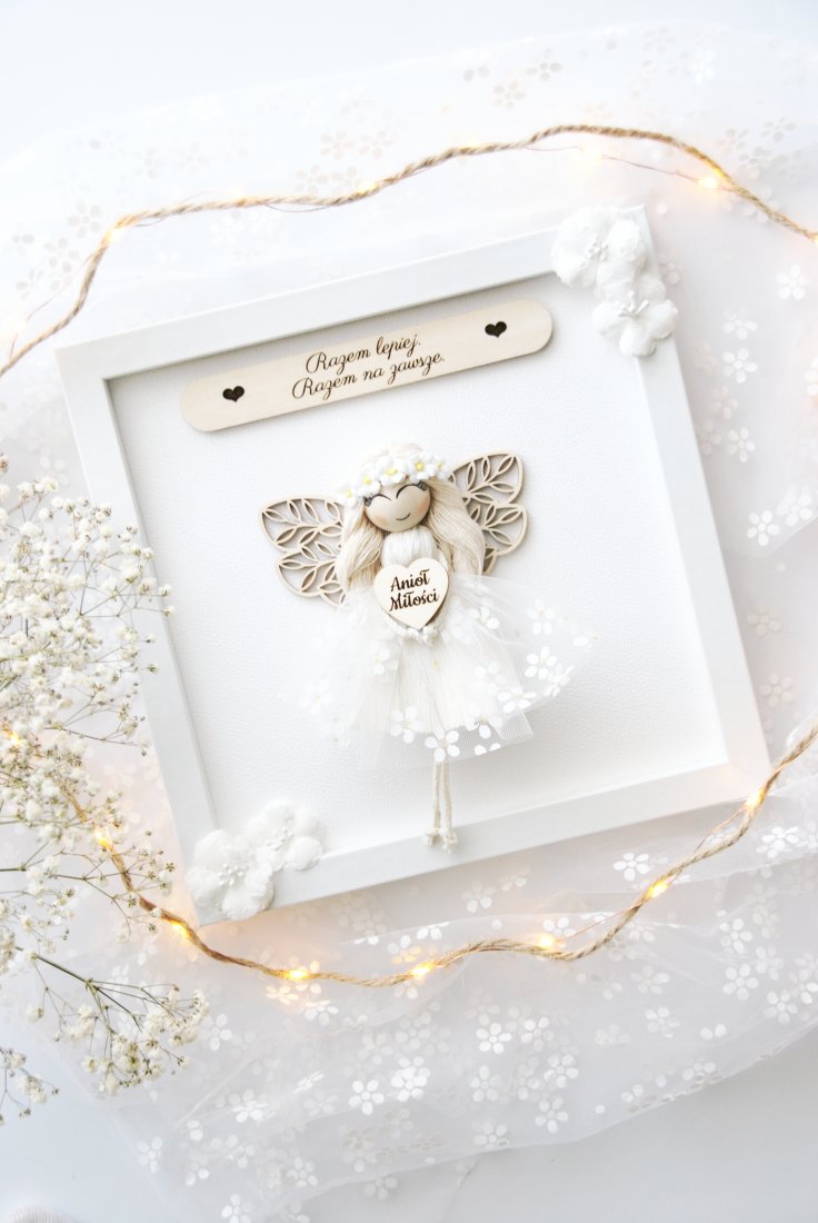 Podaruj Nowożeńcom coś więcej niż zwykły upominek – podaruj symbol miłości, opieki i szczęścia. Anioł Miłości to ręcznie wykonana dekoracja w formie uroczego aniołka, zamkniętego w eleganckiej ramce. To nie tylko piękny element wystroju wnętrza, ale przede wszystkim pamiątka, która przez lata będzie przypominać Młodej Parze o najważniejszym dniu ich życia.