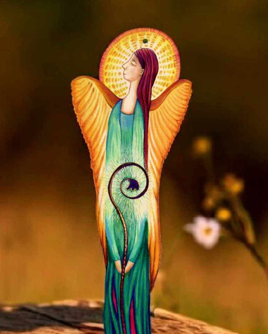Piękna dekoracja wnętrza - Anioł NADZIEJA wycięty ze sklejki sucho trwałej o grubości 4 mm.