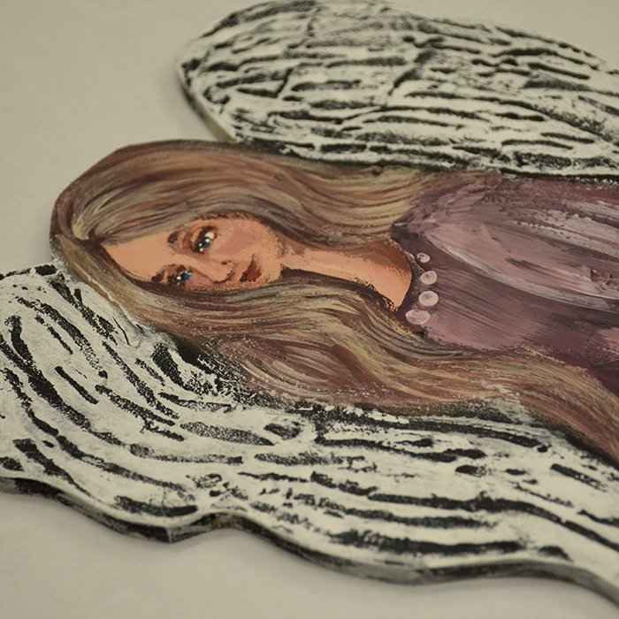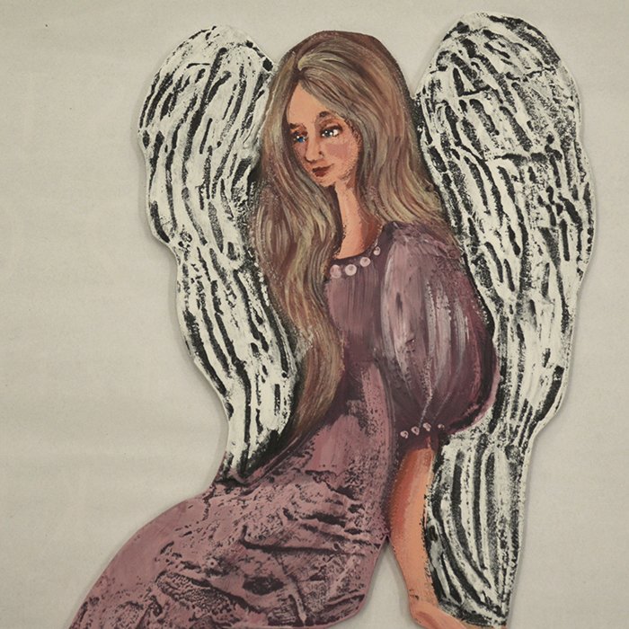 Anioł ręcznie malowany na drewnianej, dociętej do kształtu płycie. Wymiar ok. 50 cm x 19 cm x 5 mm. Można go umieścić na futrynie bądź ramie lustra czy półce z kantem. Widoczna faktura na skrzydłach i szacie. Każdy z moich Aniołów jest oryginalny, niepowtarzalny, ma swój własny urok, charakter i osobowość. Doskonały prezent na dla bliskiej osoby. Kolor szaty róż i fiolet.