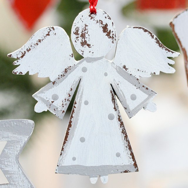 Drewniany anioł 10 cm, czerwony. Może być zawieszką w ulubionym miejscu, dodatkiem do większego prezentu, drobnym upominkiem, oryginalną ozdobą choinki.