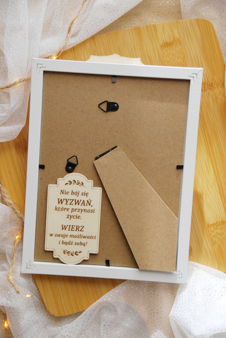 Stylowa ramka idealnie sprawdzi się jako prezent dla mamy, córki, przyjaciółki czy babci. Z tyłu znajduje się tabliczka z inspirującym przesłaniem.