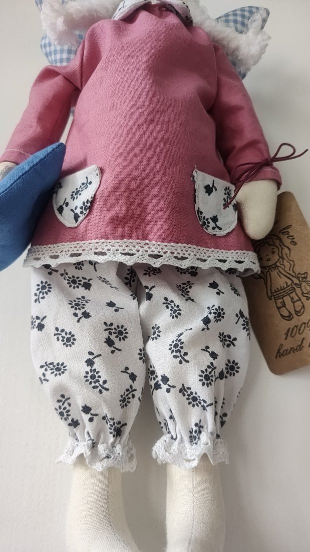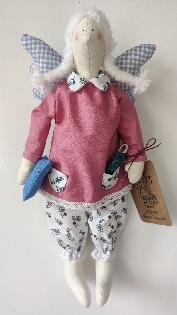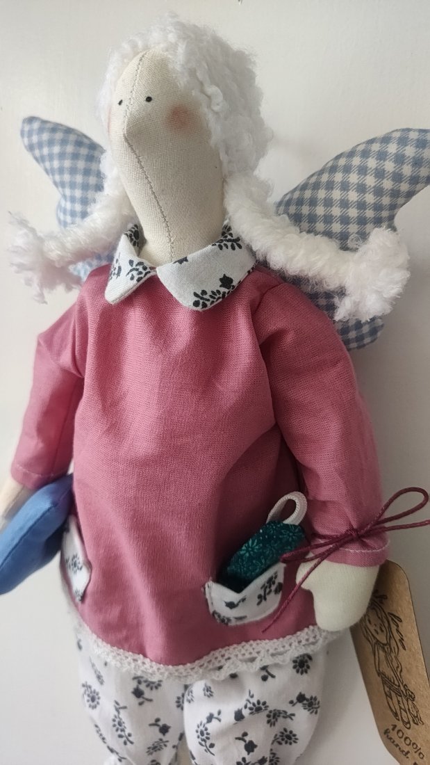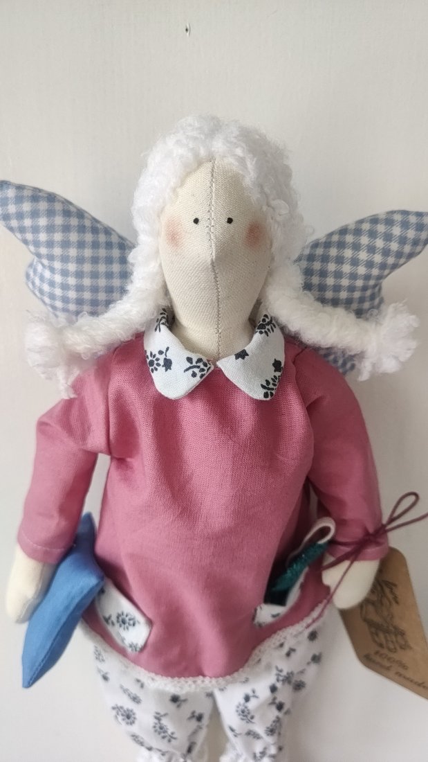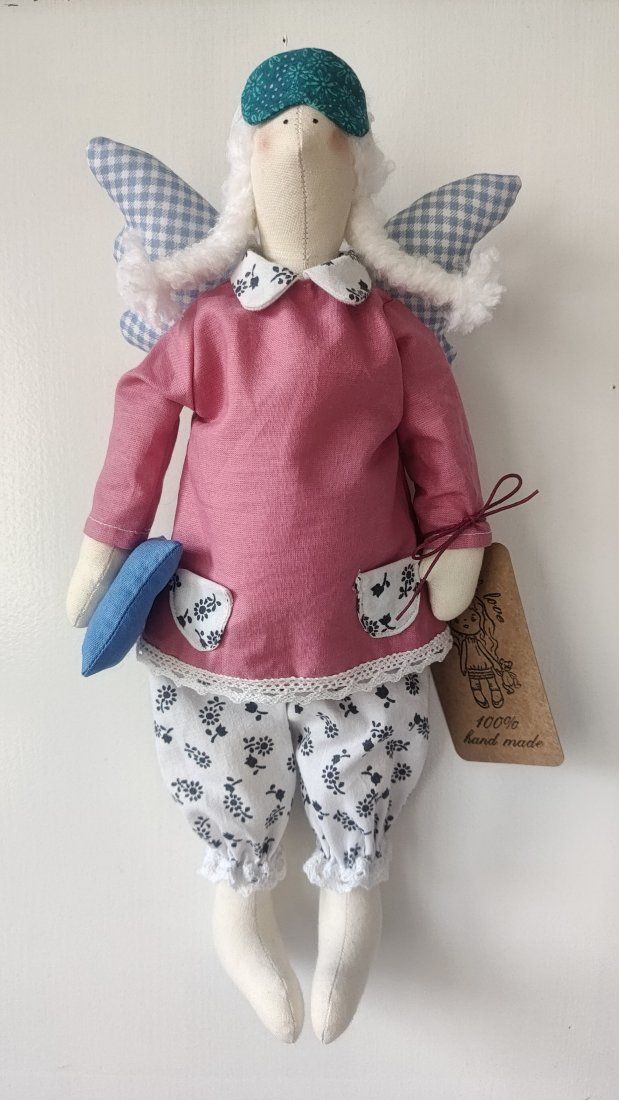 Aniołek tilda w piżamce. Stróż pięknych i kolorowych snów :) Uszyty starannie z detalami. Może siedzieć i wisieć. Ozdobi każdy kącik. Dobry pomysł na prezent.