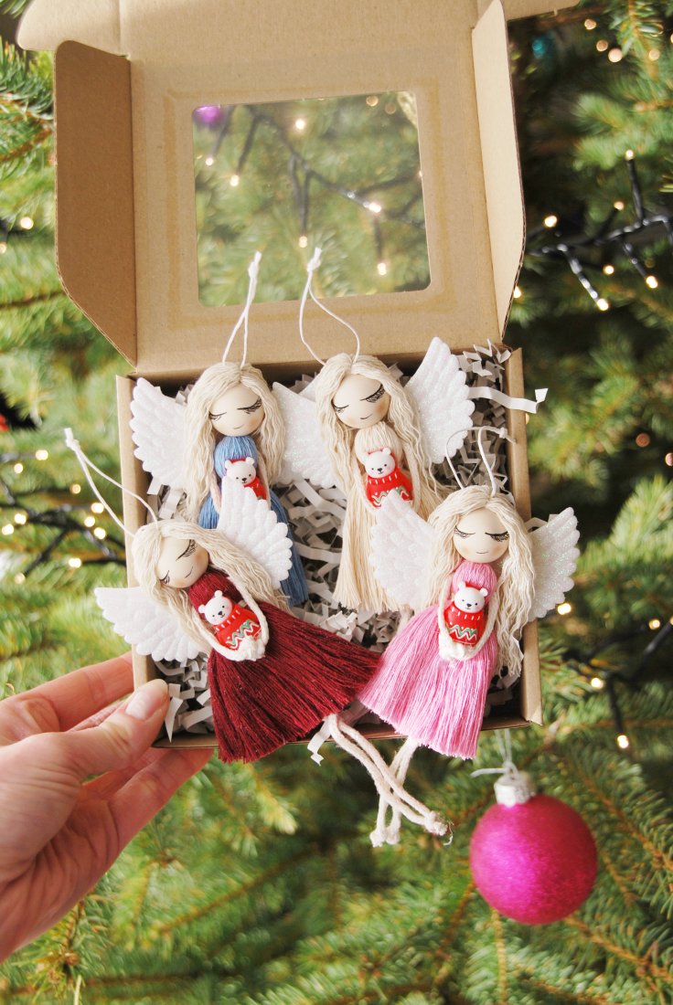 Wprowadź do swojego domu prawdziwą magię świąt dzięki urokliwym, ręcznie wykonanym aniołkom, które rozświetlą każdą choinkę swoim subtelnym blaskiem. Każdy aniołek to unikatowa, dopracowana w najmniejszym detalu ozdoba – od delikatnych skrzydełek, przez miękkie, kremowe włoski, aż po starannie plecione sukienki w pięknych kolorach.
