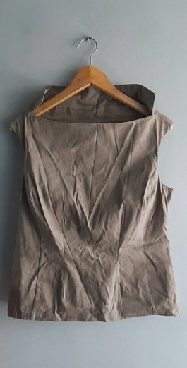 Raz założona stan idealny gorsetowa bluzka bez rękawów 70 len 30 elastan,lekko rozciągliwa, dopasowuje się do sylwetki, kolor khaki z lekkim połyskiem, długość 55 szerokość pod pachami ok 50 bez naciągania, przepraszam że wymięta