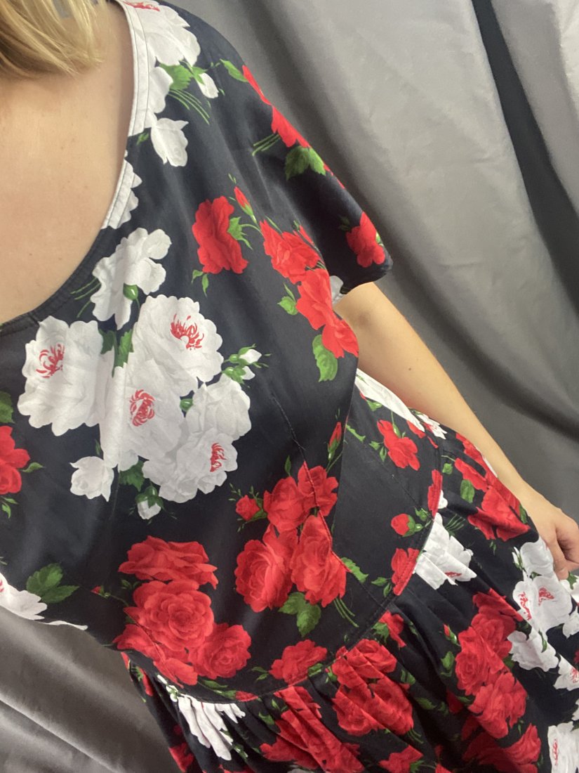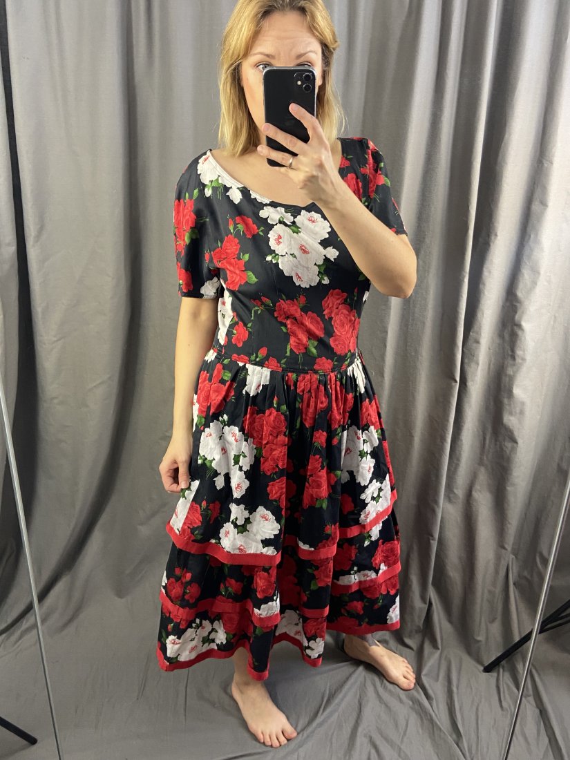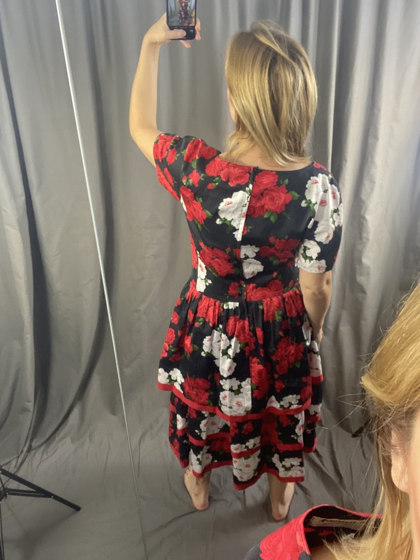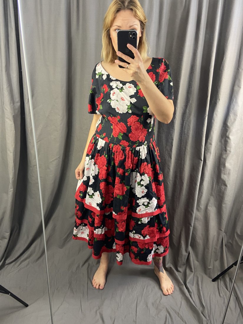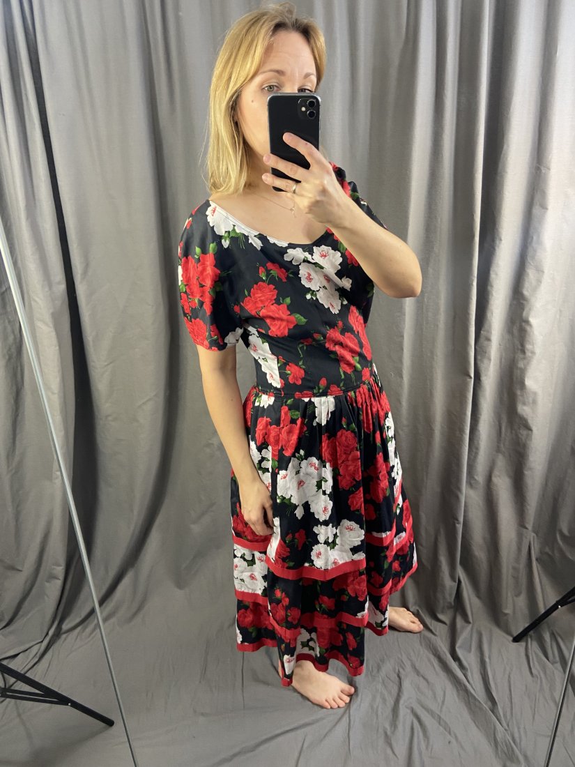 Antonette Franz Haushoffer, Bawełniana sukienka vintage, uszyta w Niemczech. W dolnej części posiada podszewkę.