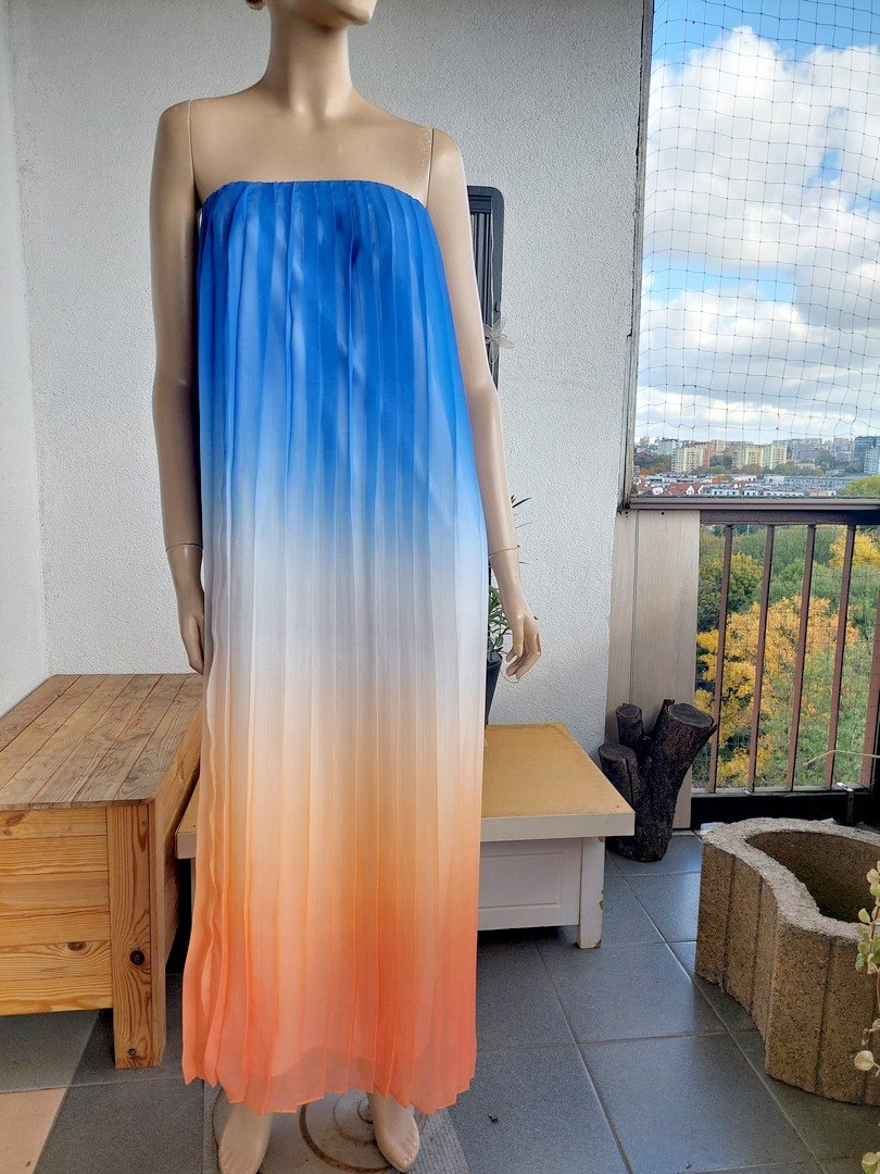 piękna spódnica marki apart. Materiał 100% delikatny, transparentny, cieniowany poliester, pod spodem elastyczna podszewka. w pasie guma. spódnica jest bardzo długa. stan bardzo dobry, z tyłu mały defekt (zdjęcie) Rozmiar z metki 38, proszę sprawdzić wymiary. stan bardzo dobry. Podaję wymiary mierzone na płasko;