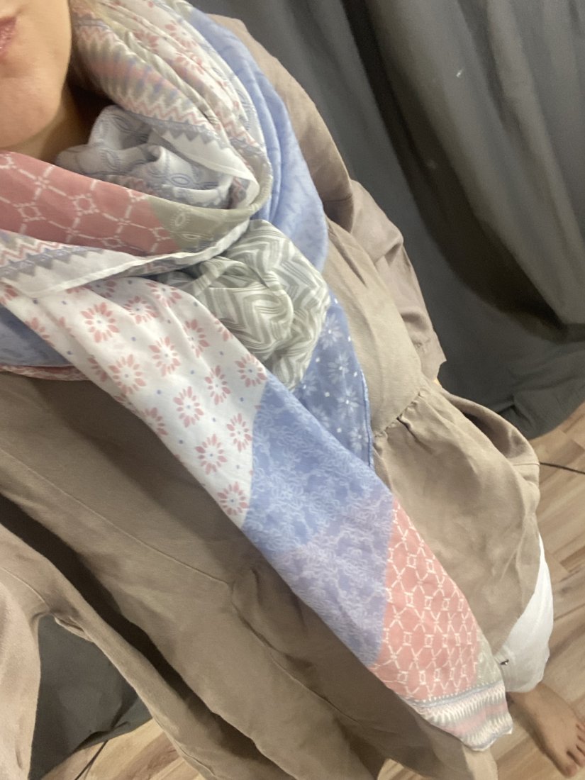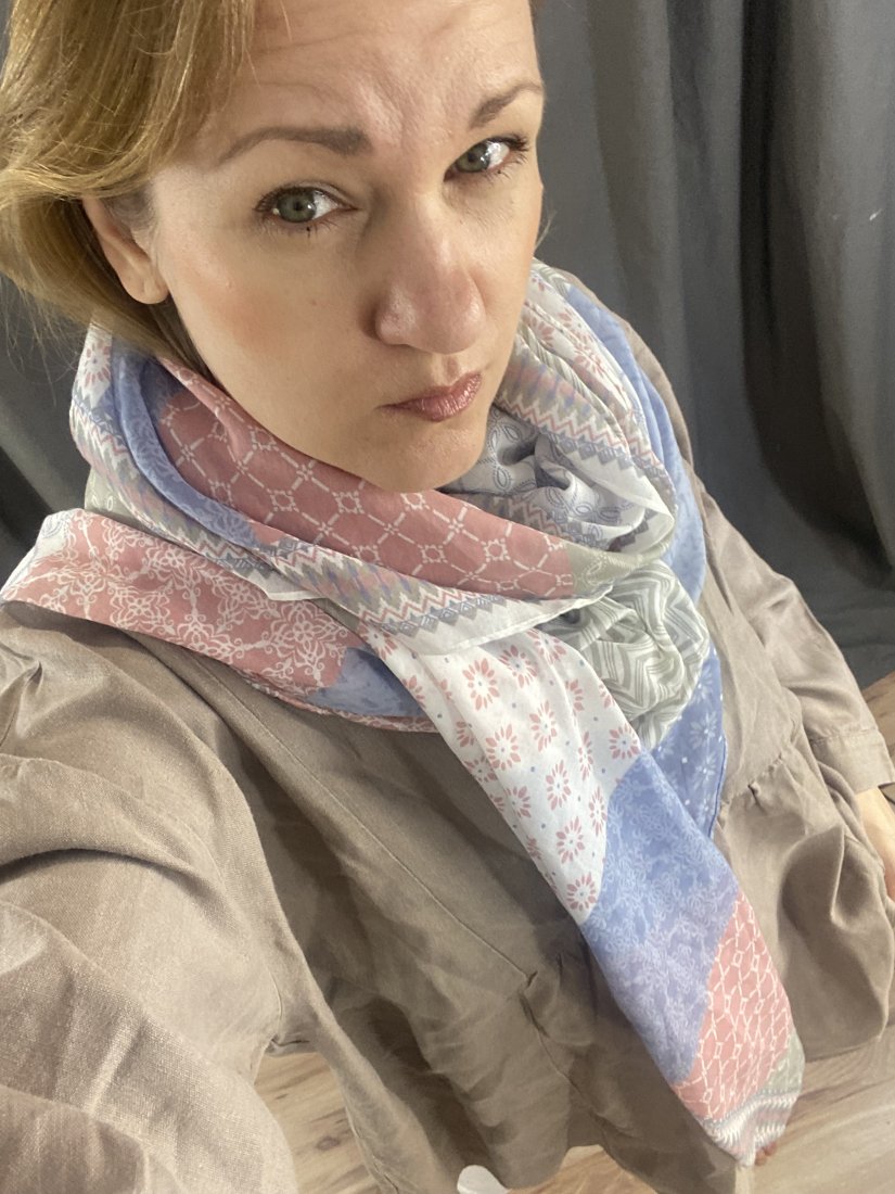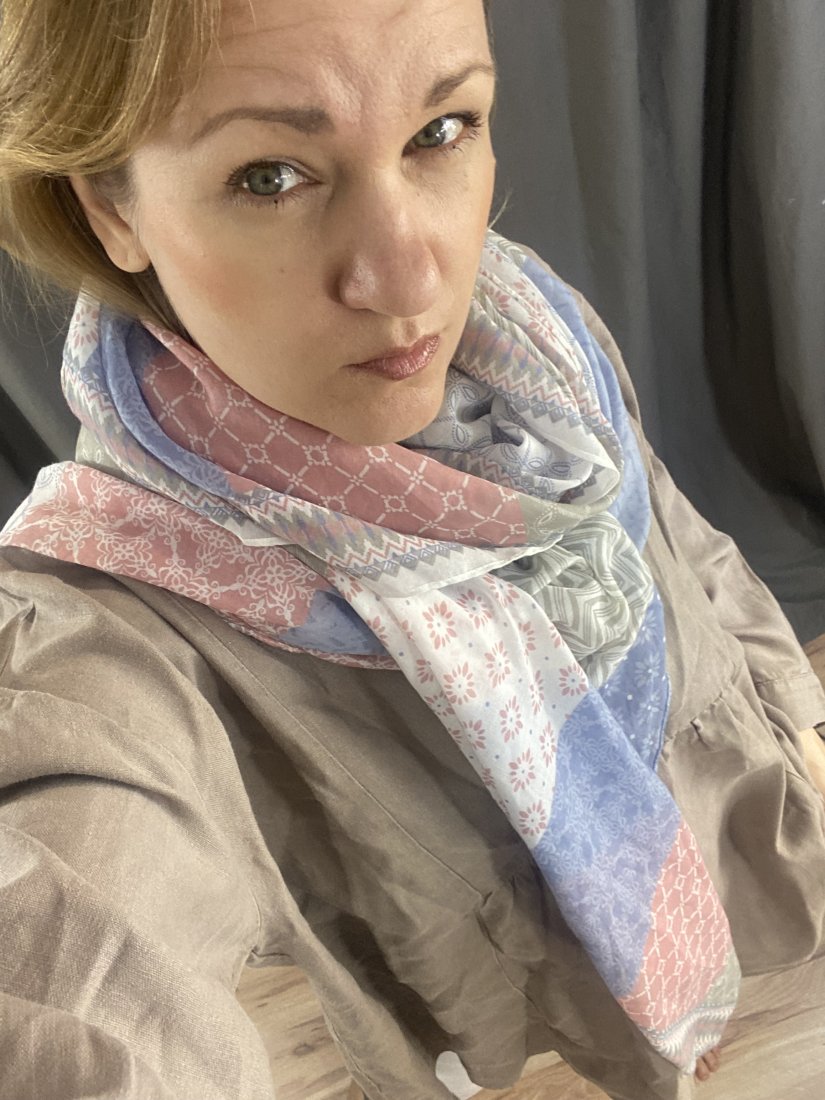 Apaszka z lekkiego poliestru. Bardzo miła w dotyku, przewiewna, fruwająca.