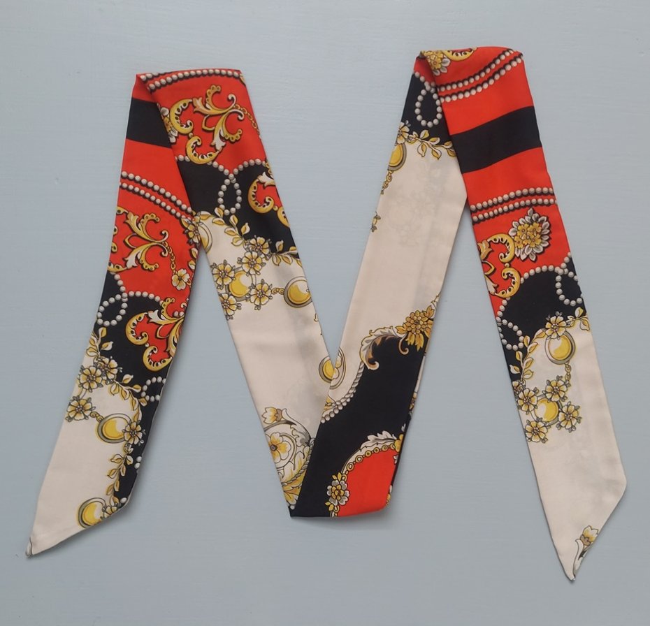 Czerń, czerwień i beż to trzy kolory, które doskonale wpisują się w kanon klasyki i elegancji w modzie. Każdy z nich ma swój niepowtarzalny charakter i potrafi stworzyć różne, ale zawsze wyrafinowane stylizacje. Tutaj występują razem w formie apaszki typu twilly ręcznie robionej.Ta apaszka będzie doskonałym uzupełnieniem stylizacji w jednym z klasycznych kolorów – czerni, czerwieni lub beżu. Niezależnie od tego, czy wybierzesz ją do pracy, na spotkanie czy wieczorną wyjście, apaszka doda stylizacji nie tylko koloru, ale i szyku.