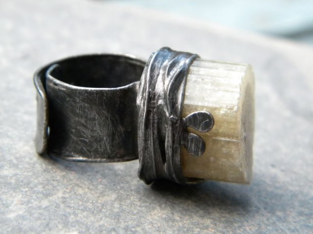 piescionek.miedz,cyna,apatyt.(Kamień pochodzi z Atlasu Wysokiego - Maroko) obraczka o szerokosci ok 13mm. oczko o wymiarach 2,4x2,2cm- wysokość kamienia z oprawą 1,8cm. rozmiar regulowany,jednak lepiej żeby był ustawiony przeze mnie... Nabywce prosze o podanie rozmiaru - tak jak jest ustawiony na zdjeciach to rozmiar ok 16-17. Badzo ciekawy okaz,polecam!
