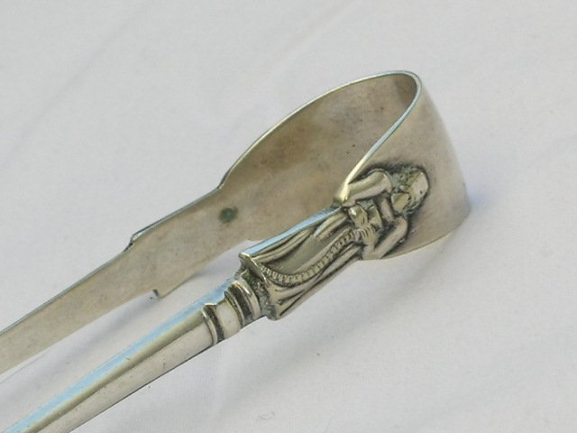 Bardzo ciekawe łyżeczko-szczypczyki do cukru, z serii, na którą od czasu do czasu trafiamy na łowach - okazuje się, że nazywają się łyżeczkami apostolskimi ze względu na posągowe a przyjazne postaci w zdobieniu. Człowiek uczy się przez całe życie :) Ten sztuciec sygnowany EPNS, czyli szlachetnie elektro-platerowany-srebro-nikiel. Wygodny, w ładnej proporcji. Najwyraźniej także kolekcjonerski. 1,7 x 4 x 11 cm. Stan zachowania bardzo dobry; do doczyszczenia.