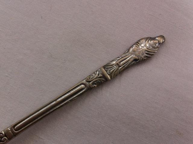 Bardzo ciekawa łyżeczka, na jaką od czasu do czasu trafiamy na łowach - okazuje się, że nazywa się apostolską ze względu na posągową a przyjazną postać w zdobieniu. Człowiek uczy się przez całe życie :) Sygnowana; chrom. Wygodna, w ładnej proporcji. Najwyraźniej także kolekcjonerska, zwłaszcza, gdy zbierze się całe grono Dwunastu :) 2,3 x 11,4 cm. Stan zachowania bardzo dobry minus plamki przebarwień do doczyszczenia.
