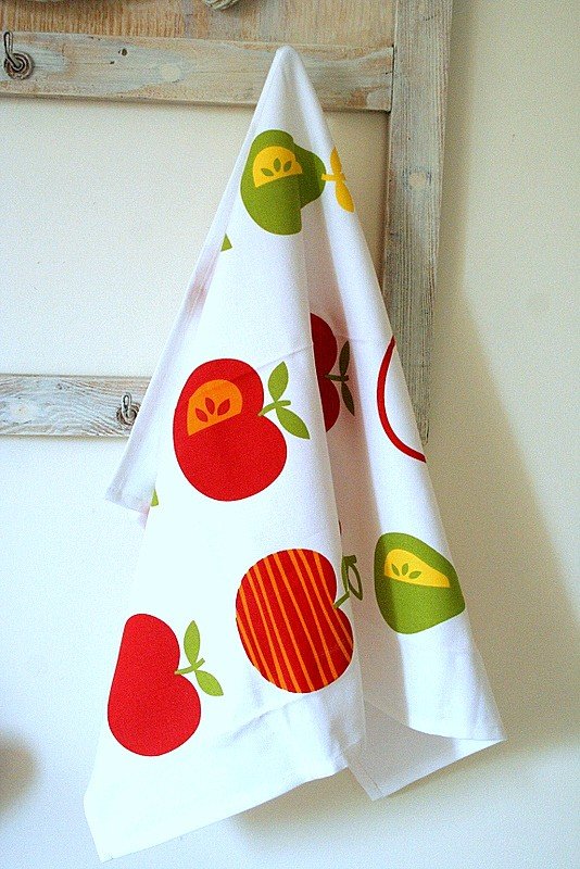 Bawełniana ściereczka kuchenna w słodkie jabłuszka i gruszki:) Idealna do wnętrz w stylu country...