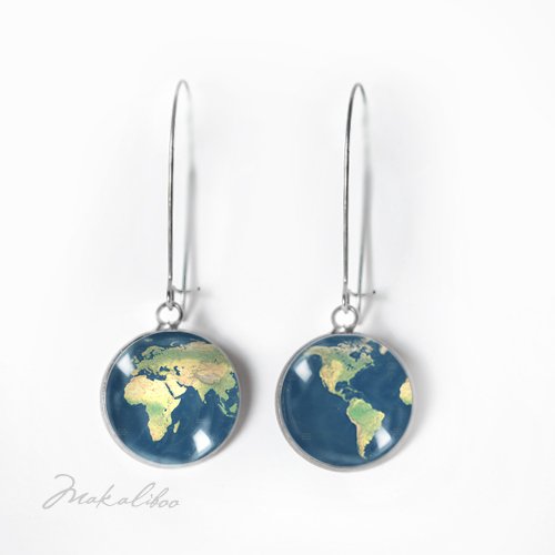Sympatyczne, kobiece, zwracające uwagę kolczyki z Mapą Świata.