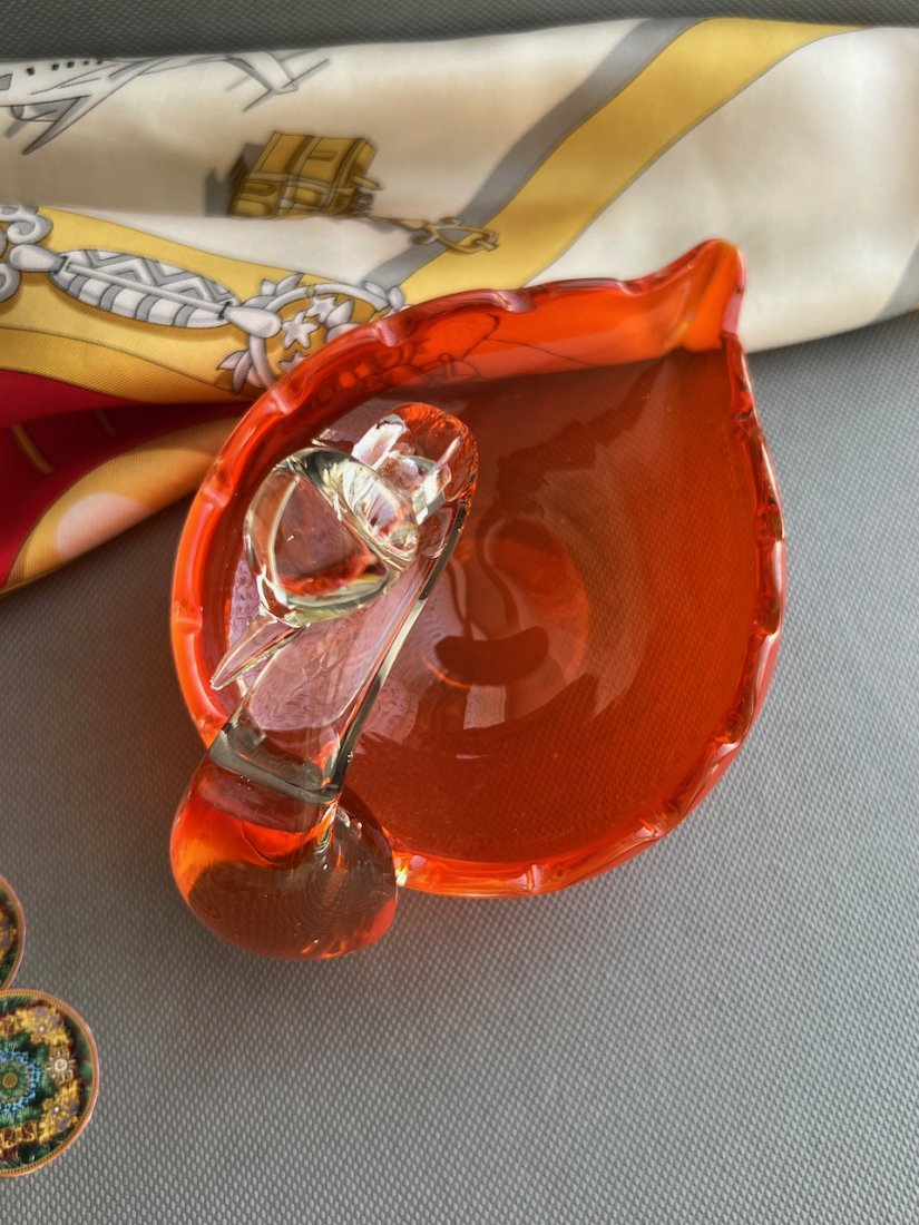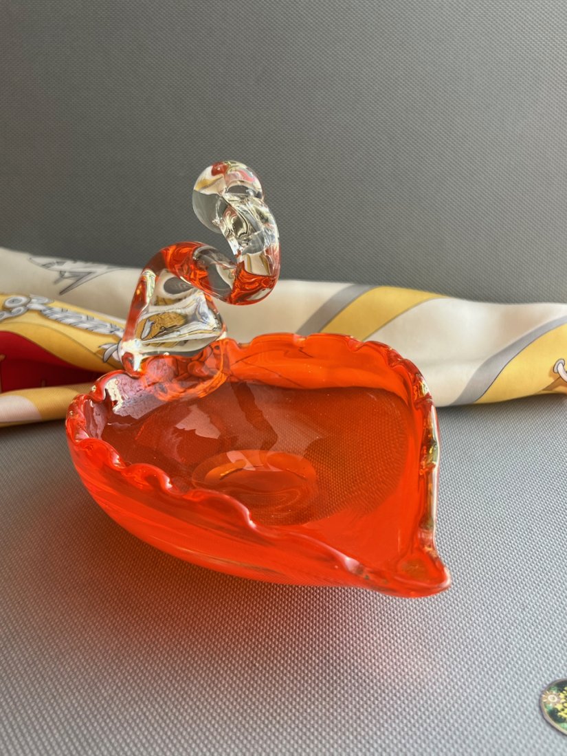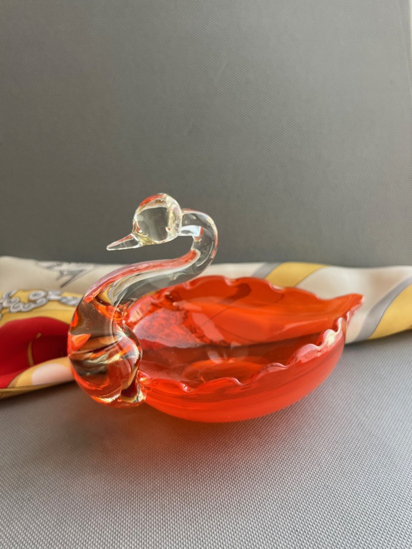 Art Glass Italy ❤ Swan bowl ❤ Paterka Urocza paterka, ręcznie wykonana z pełnego szkła w soczystej pomarańczowej barwie. Wyrób włoski o wysokim wyrazie artystycznrm. Krystaliczne szkło, które w natężeniu światła uwalnia swoją głębię. Artystyczne wykonanie, made in Italy. Wyjątkowo piękny przedmiot.