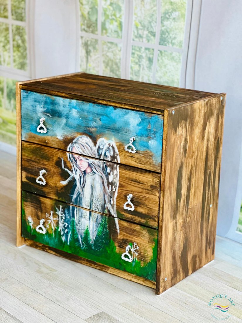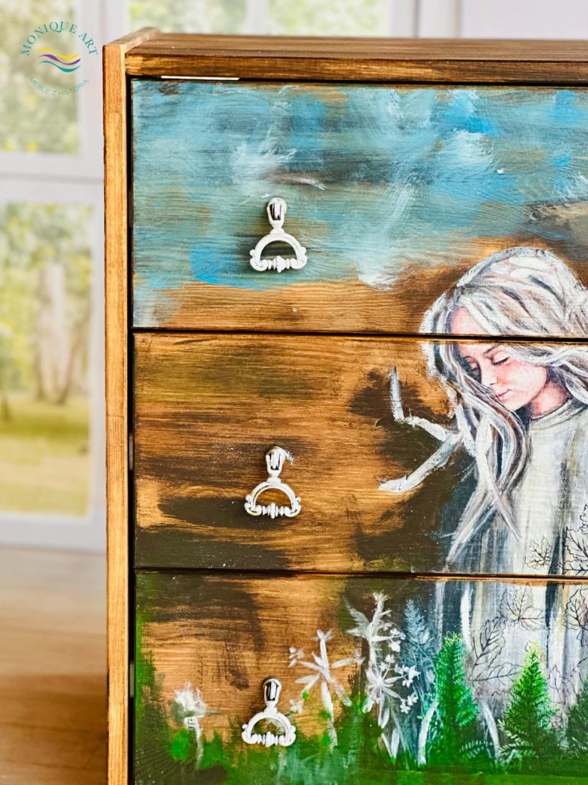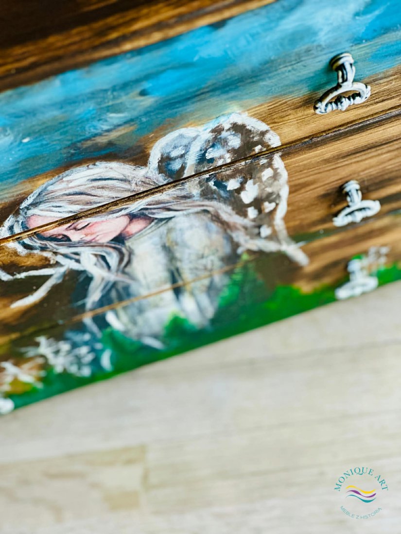 Tagi: #komoda dekorowana, #komoda drewniana, #komoda z szufladami, #ręcznie malowana komoda