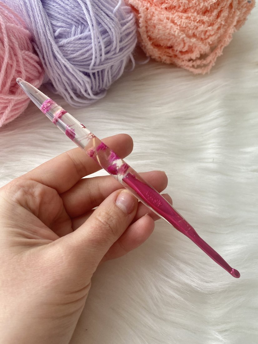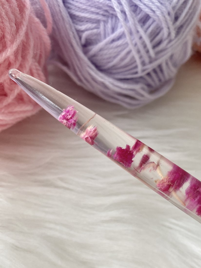 Lubisz oryginalne przedmioty z duszą? To artystyczne szydełko jest właśnie dla Ciebie! Każdy egzemplarz powstaje ręcznie – uchwyt wykonany jest z żywicy epoksydowej, w której zatopione zostały prawdziwe suszone kwiaty. Dzięki temu każde szydełko staje się nie tylko praktycznym narzędziem, ale także małym dziełem sztuki – eleganckim, wyjątkowym i inspirującym.