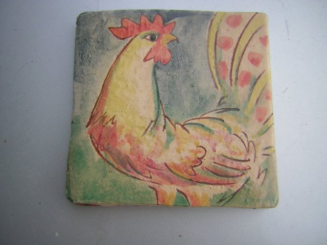 Ręcznie robiony i malowany ceramiczny kafelek ozdobny. Fantastyczny dekor do wklejena, po dołożeniu uchwytu - do powieszenia, doklejeniu materiału, bądź korka - jako podstawka pod gorące służyć może. Wygląda na ręcznie formowany, malowany podszkliwnie angobą. Szkliwiony. Od spodu matowy, na pewno wypalania w piecu ceramicznym. Szkliwienie błyszczące . Kolory rozbielone...kojarzą mi się ze słońcem Portugalii. Radosny.