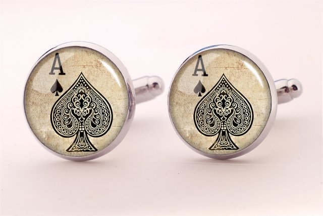 Ręcznie robione spinki do mankietów z wysokiej jakości grafiką pokrytą wypukłym, powiększającym szkiełkiem.