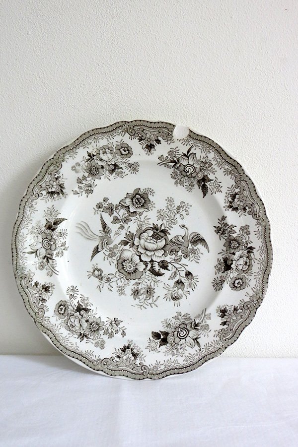 Talerz szkockiej firmy STAFFORDSHIRE TRANSFERWARE PLATE -ASIATIC PHEASANTS [Azjatyckie bażanty ].