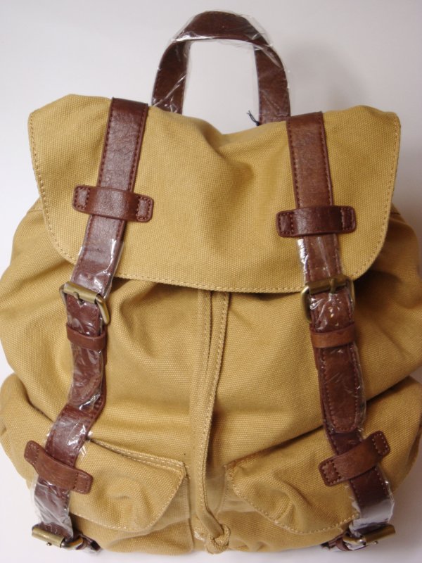 *dwie zewnętrzne kieszonki zapinane na paski, w środku jedna duża komora + mała kieszonka na zamek, regulowane szelki