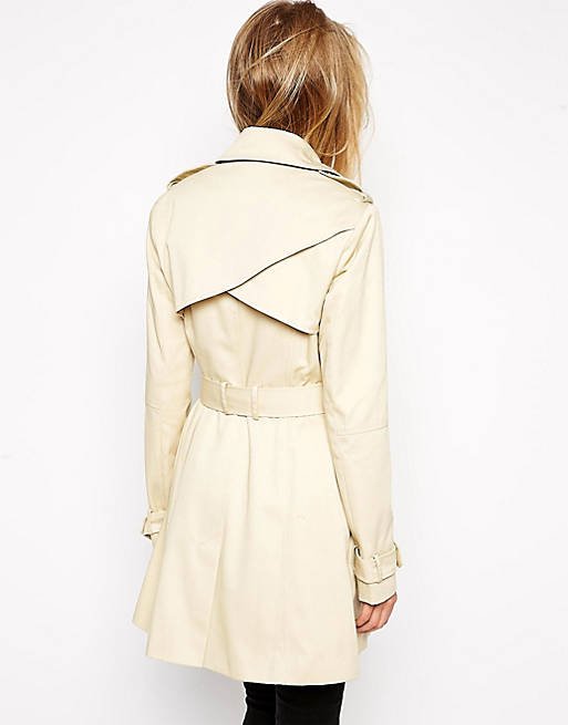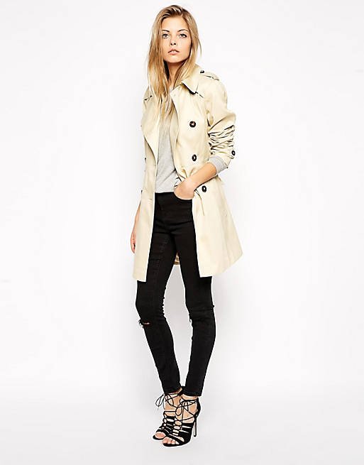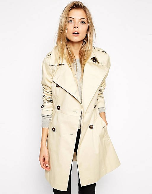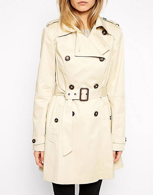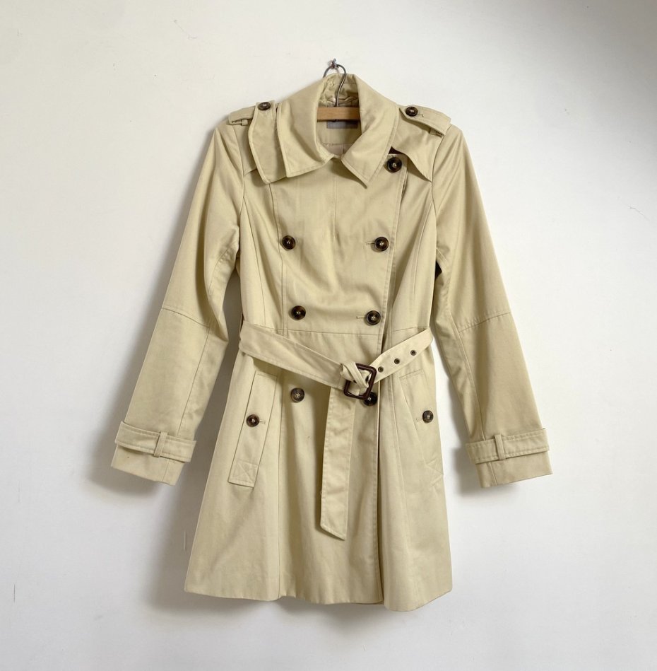 Klasyczny, beżowy trencz zapinany na guziki, z paskiem. Stan idealny.