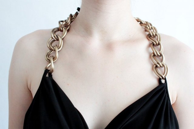 Efektowny top marki ASOS ozdobiony łańcuszkami. Top jest wiązany na szyi.