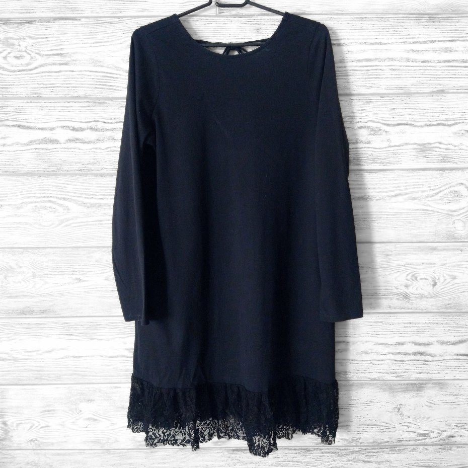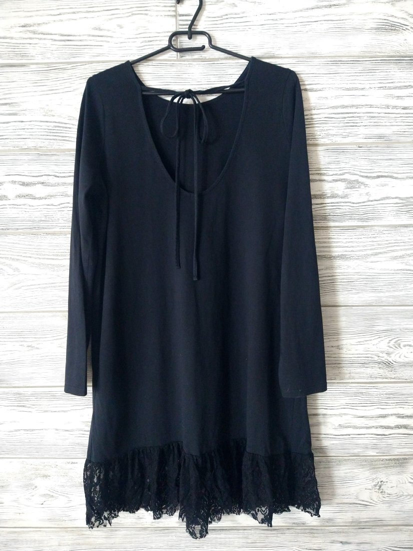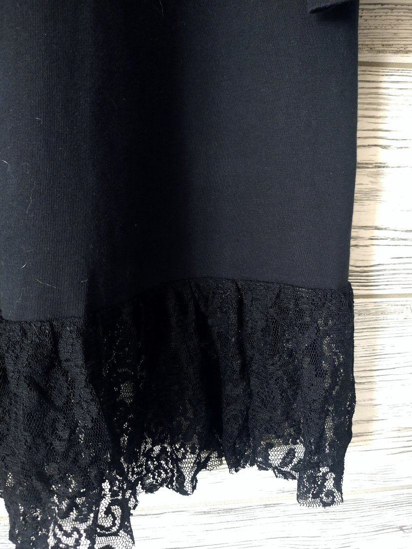 Czarna bawełniana sukienka wykończona u dołu koronka.