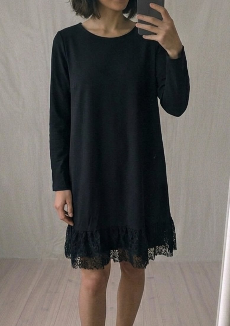 Czarna bawełniana sukienka wykończona u dołu koronka.