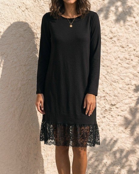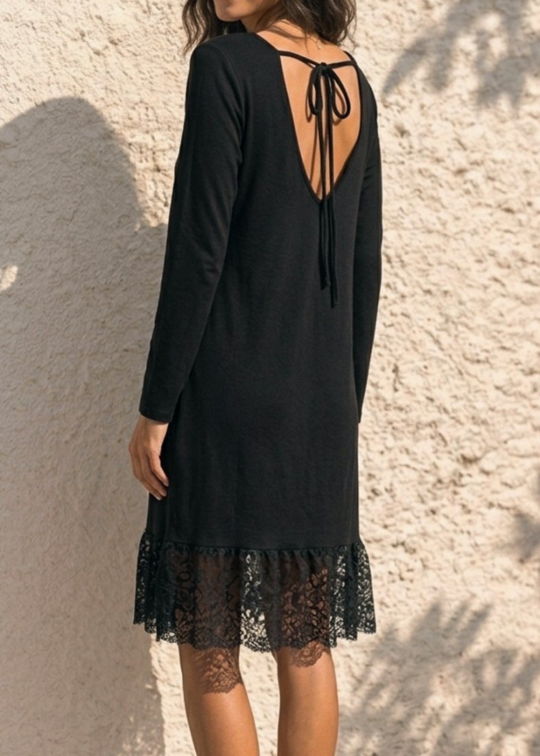 Czarna bawełniana sukienka wykończona u dołu koronka.