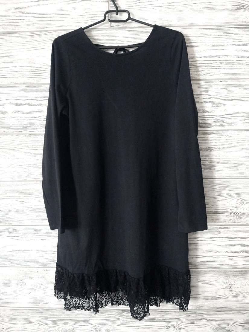 Czarna bawełniana sukienka wykończona u dołu koronka.