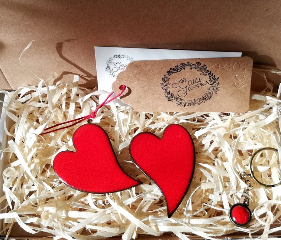 Serce zapakowane w estetyczne ekologiczne pudełeczko wymoszczone ozdobną wełną drzewną, widoczne na zdjęciach pokazowych.
