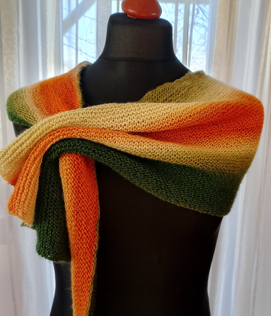 Wyjątkowo piękny asymetryczny szal wykonany w całości ręcznie na cienkich drutach, z cieniowanej delikatnej włóczki merino. Szal jest miły w dotyku, leciutki a przy tym ciepły. Będzie wyjątkowym dodatkiem do każdej stylizacji. Jest unikatem, powstał wyłącznie w jednym egzemplarzu.