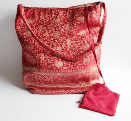Piękna orientalna torba z atłasu. Wewnątrz przytwierdzona tasiemka, a do niej mała saszetka widoczna na zdjęciu.
