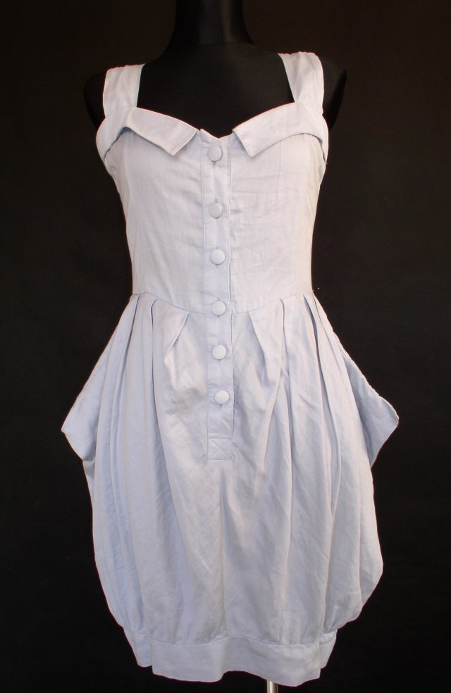 Letnia sukienka firmy atmosphere.Rozmiar 38.Materiał bawełna.Odcięta w pasie.Z przodu rozcięcie zapinane na guziki obciągane materiałem.Góra z przodu z kołnierzykiem,tył na środku ściągany gumkami.Szerokie ramiączka.Dół rozszerzany zakładkami.Boki rozszerzane kieszeniami.Dół zebrany w listwę.Stan bardzo dobry-.Długość 98 cm.pod pachami 92 cm.bez rozciągania.