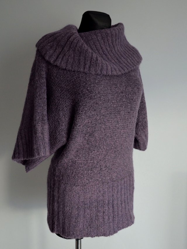 Piękny fioletowy kolor. Sweterek bardzo stylowy i oryginalny. Świetny do jeansów i getrów. Może służyć jako przyrzutka. Stan bardzo dobry. Polecam