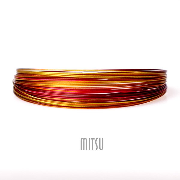 Minimalistyczna bransoleta w pięknej jesiennej gamie: złocistych odcieni żółtego, głębokiego brązu i czerwieni. Zbudowana ze stalowych linek krytych nylonem. Zapięcie na magnes i blokadę. Rozmiar do wyboru: XXS: 16 cm, XS: 17 cm, S: 18 cm, M: 19 cm, L: 20 cm.