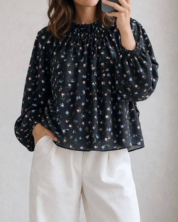 Tagi: #balonowe rękawy, #bluzka oversize, #bluzka w kwiatki, #skandynawska marka