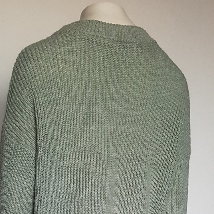 Sweter w kolorze pastelowej zieleni z długimi rękawami, z przyjemnej mięsistej dzianiny z dodatkiem wełny i aplaki.