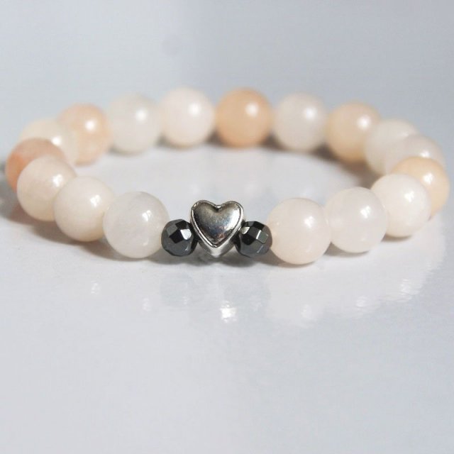 delikatna, lecz okazała bransoletka wykonana z kul AWENTURYNU ŁOSOSIOWEGO (10mm) w odcieniach bieli, ecru i nude (UWAGA! zdj. poglądowe. wybarwienie kamieni delikatnie różni się w każdej bransoletce) . przekładka kolorze srebrnym, dodatkowo 2 kuleczki fasetowanego hematytu (6mm). kamienie na solidnej lince elastycznej.... AWENTURYN ma właściwości uspokajające. Zwalcza zmęczenie i poprawia nastrój. Wzmaga kreatywność, motywację, harmonizuje; przyciąga do właściciela bogactwo i obfitość..... OBW. WEWNĘTRZNY: 16,4CM... możesz ją nosić samodzielnie lub dowolnie łączyć z innymi bransoletkami z mojego sklepiku. ZOBACZ CAŁĄ KOLEKCJĘ!!! ... MOJA BIŻU ZAWSZE PODRÓŻUJE OZDOBNIE ZAPAKOWANA - opakowanie hand made ;-