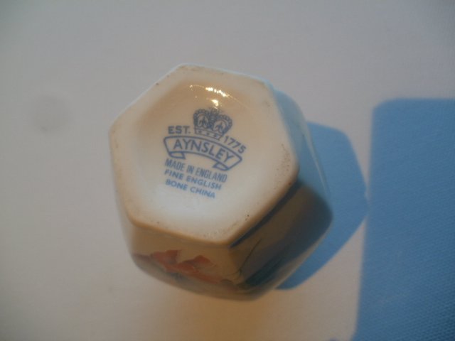 Niewielki Wazonik porcelanowy od Aynsley, z ciekawej, subtelnie zdobionej, oryginalnej serii Little Sweetheart . SSygnowany "aynsley Fine English Bone China made in england ". Jakość porcelany, lekka fakturowość zdobienia, błyszczące szkliwienie. Ciekawy, kształt. Trochę miękko-pękaty...rant i dół dodatkowo wypuklym zdobieniem zwieńczony. Delikatne barwy, urocze, kobiece, kwiatowe zdobienie. Pękatość około 5,5 dół 3,5 góra 4 wys. 8 cm