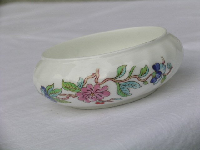 Najszlachetniej porcelanowe naczynie z kolekcjonerskiej, niezwykle estetycznej serii Pembroke od Aynsley. Powtórzenie osiemnastowiecznego wzoru ! Jakość malatury, porcelany; błyszczące wykończenie i delikatne ryflowanie. Do łazienki na drobiazgi i do kuchni na małe przekąski. 10,5 x 4,2 cm. Stan zachowania bardzo dobry.