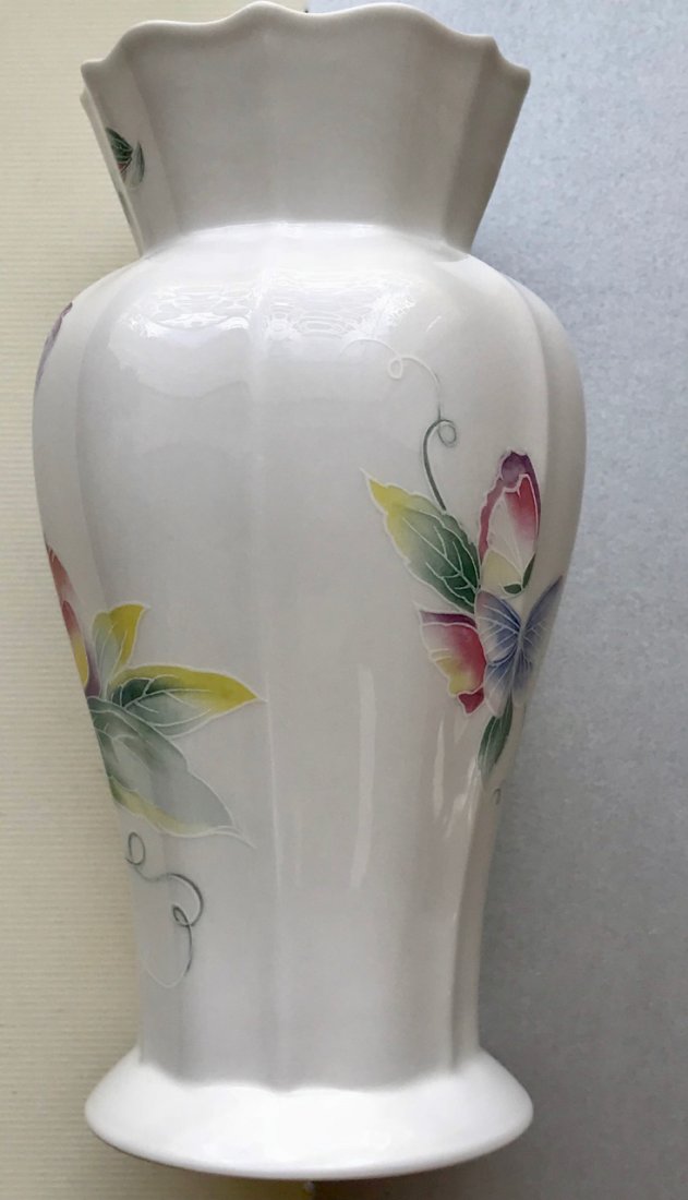 ❀ڿڰۣ❀ AYNSLEY ❀ڿڰۣ❀ SWEETHEART ❀ڿڰۣ❀ Delikatna porcelana - KOLEKCJONERSKA SERIA. Kwiaty. Urokliwe zdobienia, wyczuwalne pod palcem na delikatnej markowej porcelanie, ryflowane brzegi. Kolekcjonerska seria. Wysokość 16cm. Średnica góry 7cm. Średnica dołu 7cm. Średnica w najszerszym miejscu 10cm. Stan idealny, jeszcze z papierową metką.