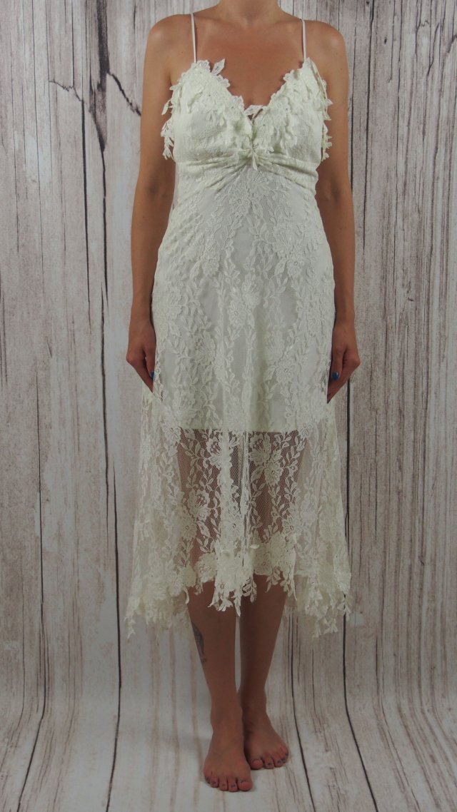 Ultrakobieca, delikatna sukienka ażurowa, z licznymi zdobieniami i małymi kamyczkami (wydaje mi się, że to cyrkonie).