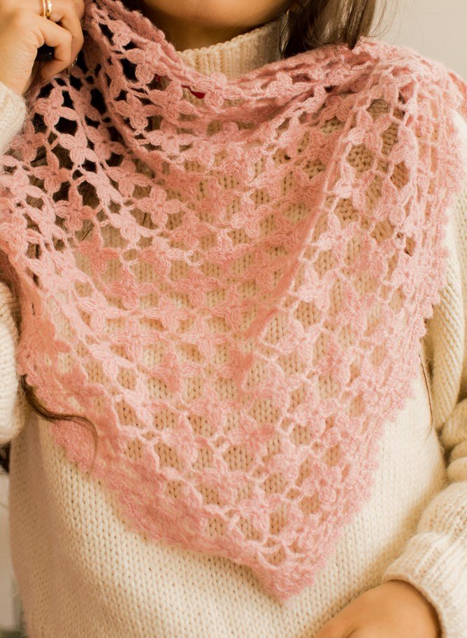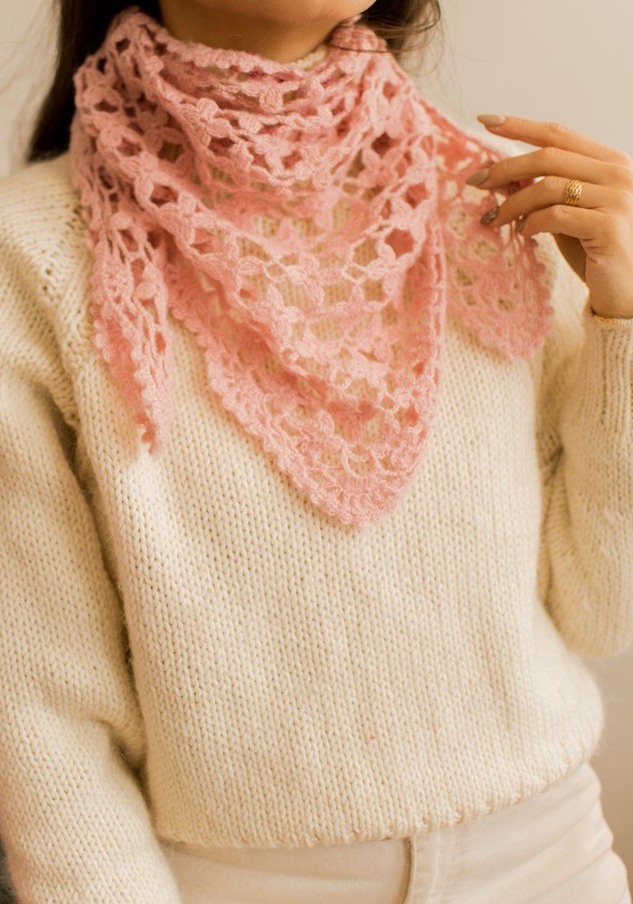 Pudrowa, ażurowa chustka.