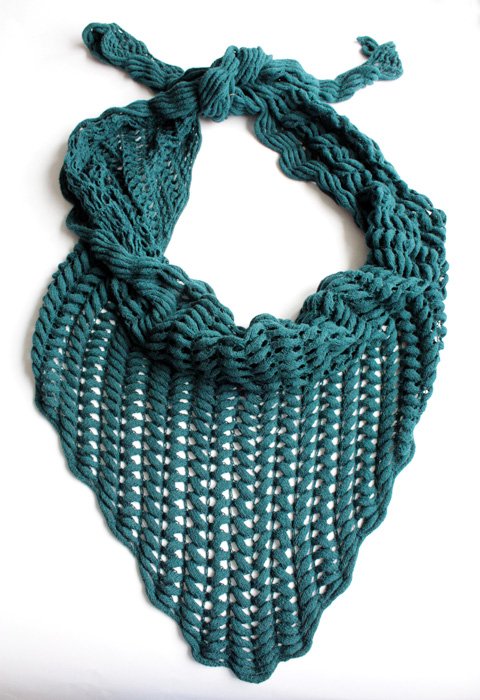 Duża trójkątna chusta w niezwykłym kolorze-na granic turkusu i jasnego granatu. Materiał oceniam na bawełnę.