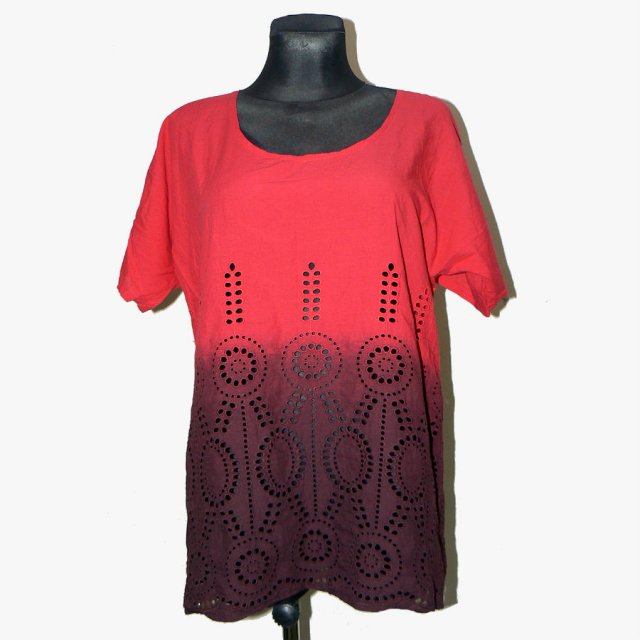 Bawełniana bluzka w intensywnie czerwonym kolorze, dół przechodzi w mocne bordo.