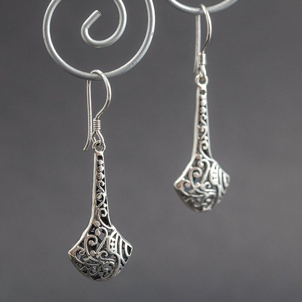 Ażurowe kolczyki w całości wykonane ze srebra próby 925. Długość całkowita kolczyków 4,4 cm. Kolczyki są ozdobnie zapakowane.