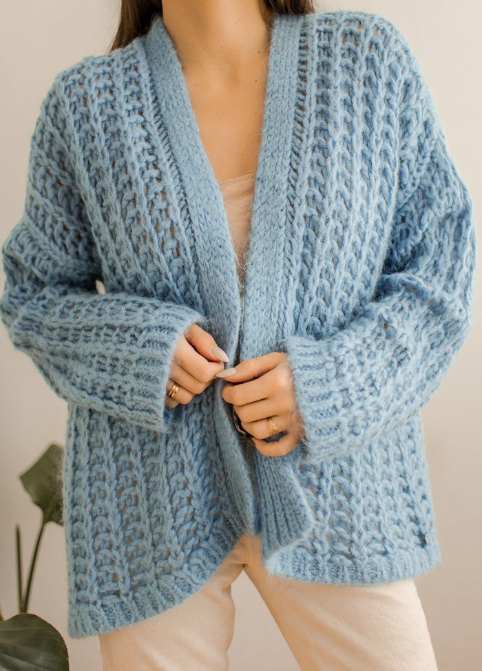 Tagi: #ażurowy kardigan, #błękitny kardigan, #ciekawy kardigan